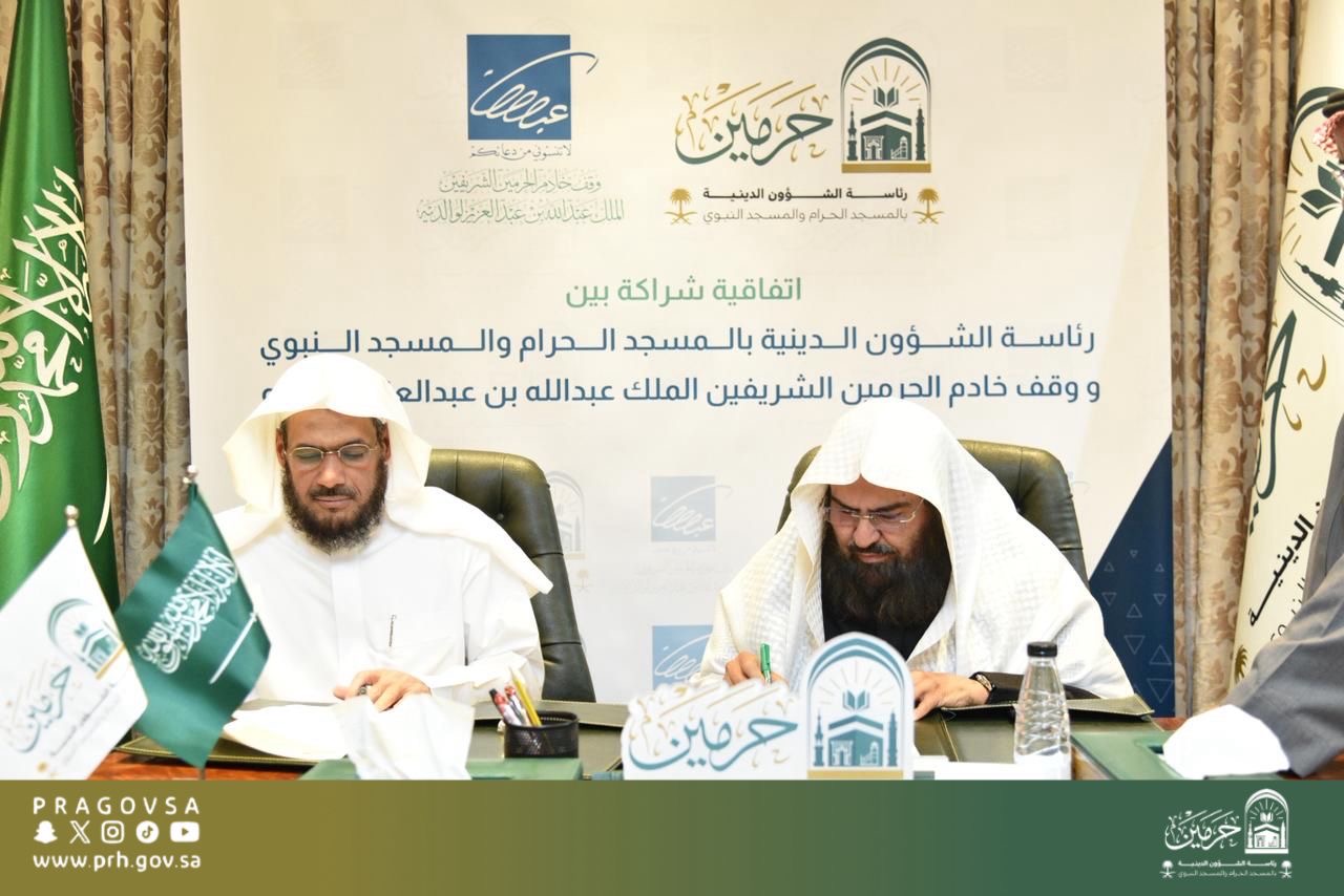 توقيع اتفاقية شراكة بين وقف الملك عبدالله ورئاسة الشؤون الدينية بالمسجد النبوي