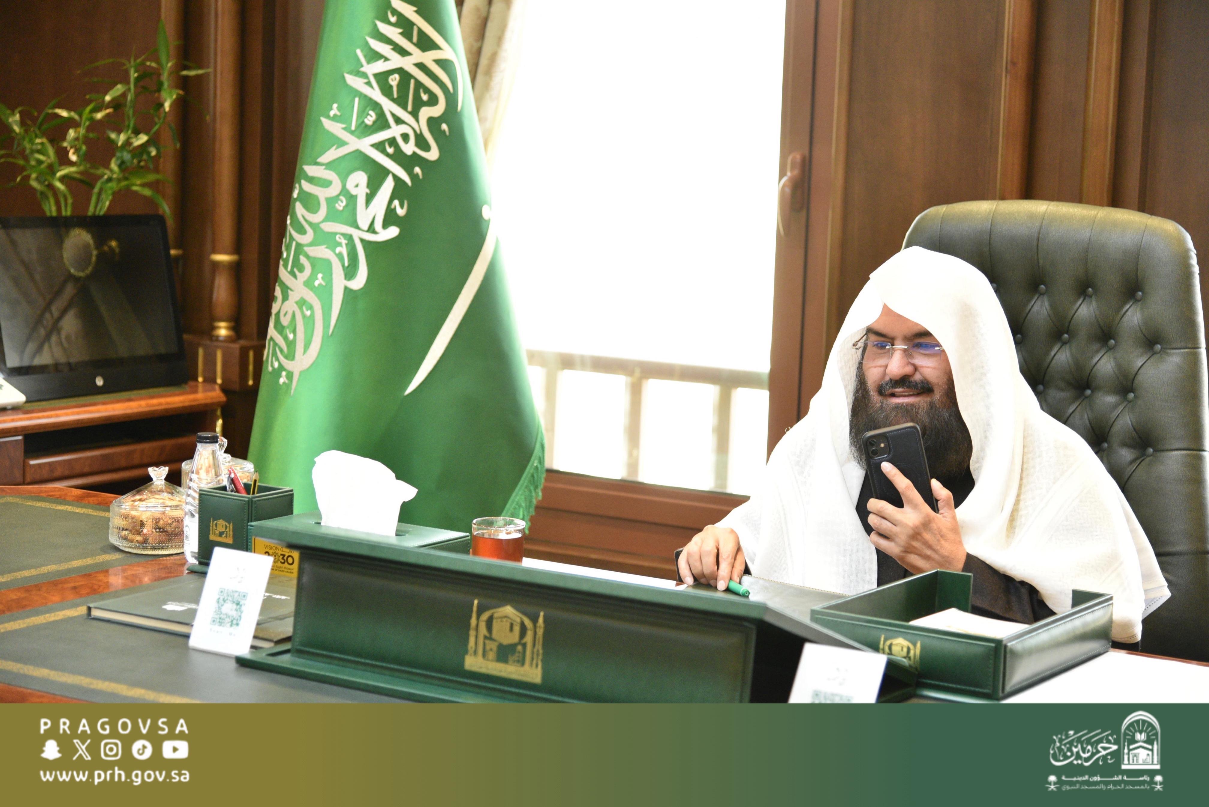 التقى معالي الشيخ الأستاذ الدكتور عبدالرحمن بن عبدالعزيز السديس، رئيس الشؤون الدينية بالمسجد الحرام والمسجد النبوي، بعددٍ من مستفيدي خدمة «إجابة السائلين» عبر الاتصال السحابي، وذلك في إطار تطوير منظومة الإرشاد الديني، وتعزيز إيصال الفتوى الموثوقة للمستفيدين بمختلف لغاتهم وأماكنهم.