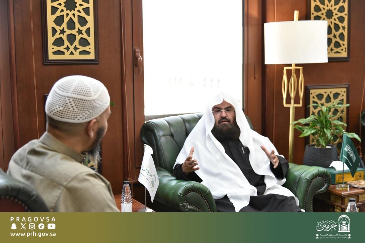 التقى معالي رئيس الشؤون الدينية بالمسجد الحرام والمسجد النبوي الأستاذ الدكتور عبدالرحمن بن عبدالعزيز السديس بعددٍ من المستفيدين من خدمات الرئاسة، وذلك في إطار حرصه على تعزيز التواصل المباشر، والاطلاع على احتياجات المستفيدين، وتطوير منظومة الخدمات الدينية المقدَّمة لزوار المسجد النبوي الشريف.